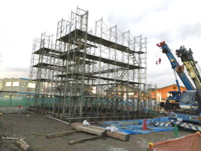 仮設工事、太陽光パネル設置、コンクリート打設・PC取付、仮設ハウス・トイレ、資材運搬、仮設材リース・販売